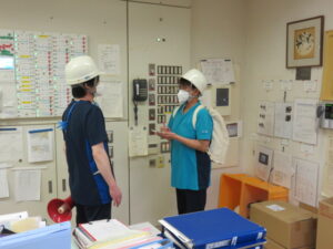 夜間帯を想定した通報、避難訓練を行い、その後に火災通報装置、屋内消火栓の説明を受けました🦽📞